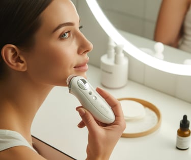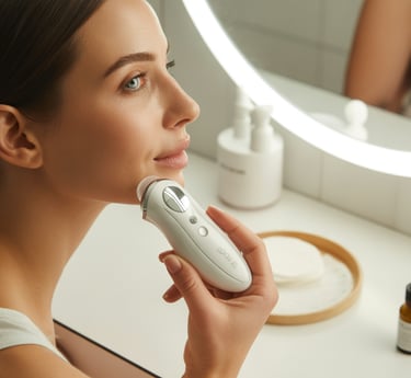 Radio-frequency devices heat the deeper dermal layers to stimulate collagen and elastin, leading to firmer, tighter skin over time. They are especially effective for softening sagging around the jawline, tightening cheeks, and smoothing wrinkles on the face and neck.