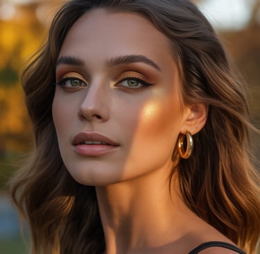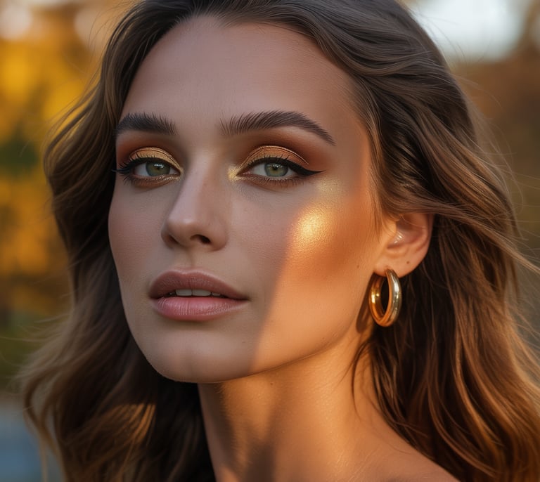Fall is the perfect season to embrace golds, bronzes, and coppers for a glowing, glamorous look. Shimmery gold or copper eyeshadow adds warmth and radiance, while dark brown or black eyeliner enhances the eyes with a touch of drama. Keep lips neutral with nude or soft pink gloss to let the eyes stand out, or choose a deep wine shade for extra boldness. A sweep of golden highlighter on the cheekbones and brow bones completes the look with a luminous, autumn-inspired glow.