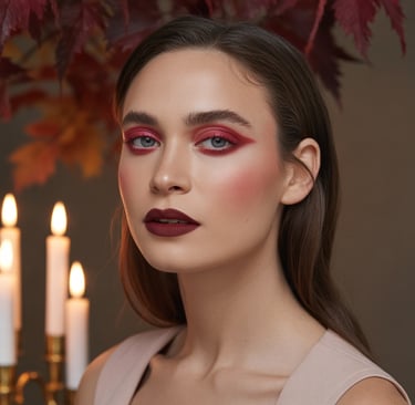 Nothing captures the essence of fall like deep reds and rich berry tones. These shades bring drama and sophistication, perfect for evenings out or festive autumn days. A cranberry or burgundy eyeshadow enhances the eyes beautifully, balanced with soft brown or black eyeliner for definition. For the lips, dark cherry, wine, or plum shades in a matte finish create a bold, elegant statement. Complete the look with a hint of berry blush or a touch of bronzer to warm up the complexion.