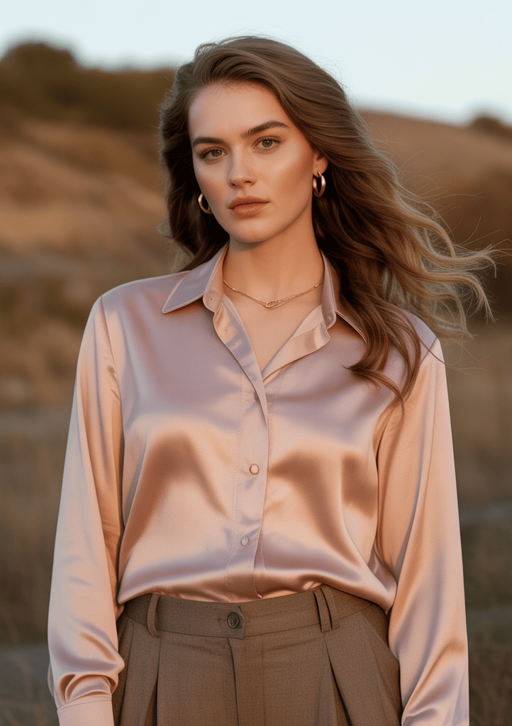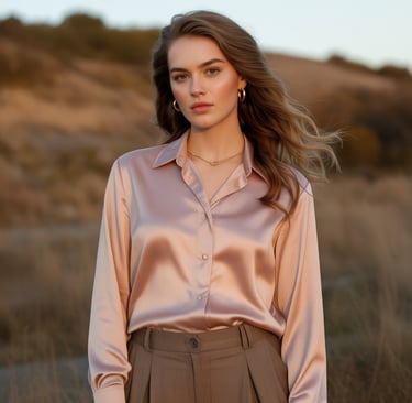 Silk & Satin: These elegant fabrics add fluidity and lightness to autumn outfits, balancing heavier textures. Their soft sheen feels both sensual and refined, day or night.