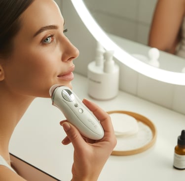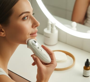 Radio-frequency devices heat the deeper dermal layers to stimulate collagen and elastin, leading to firmer, tighter skin over time. They are especially effective for softening sagging around the jawline, tightening cheeks, and smoothing wrinkles on the face and neck.