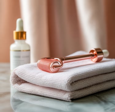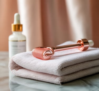 A dermaroller contains hundreds of ultra-fine needles that create micro-channels in the skin. This prompts the body to produce more collagen and elastin, improving texture, reducing the appearance of scars, refining pores, and softening wrinkles. It also boosts product absorption, allowing serums to penetrate deeper.