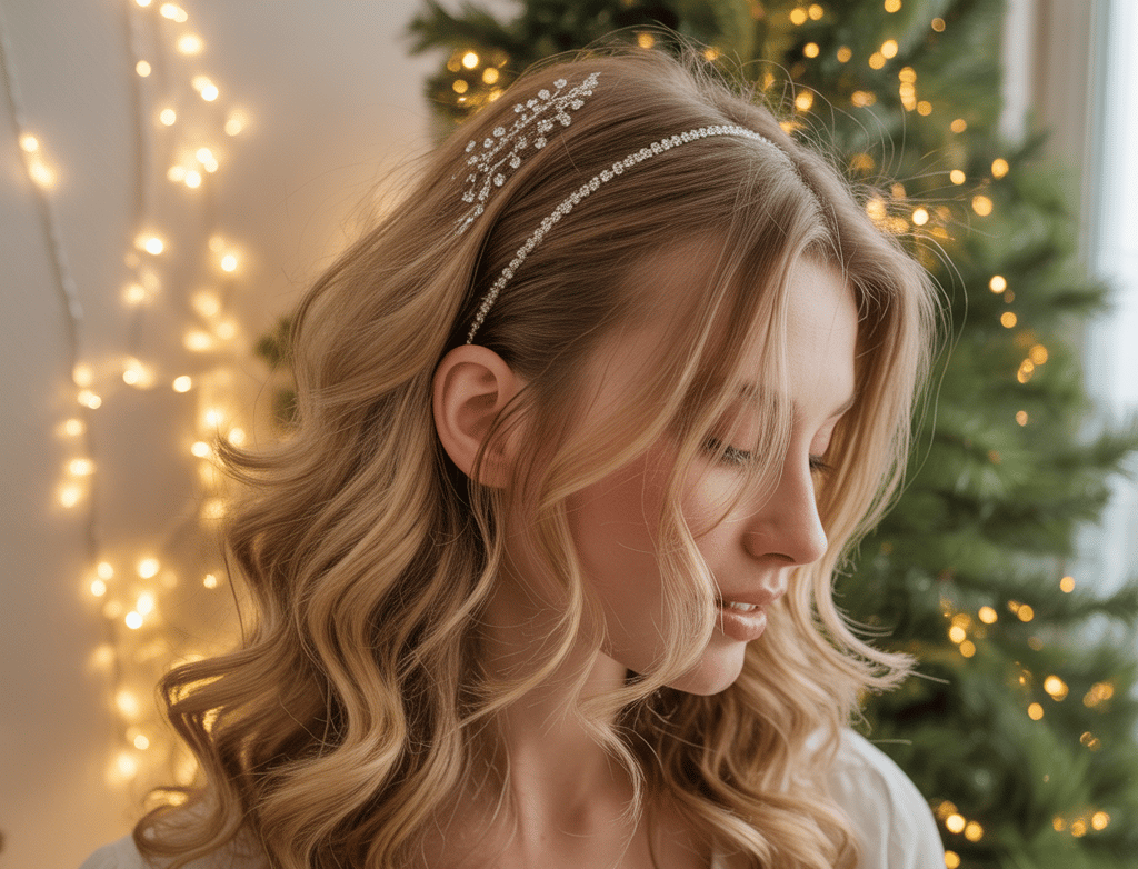 Nothing says festive and fun like soft, romantic waves. Use a curling iron to create loose, natural-looking waves, then add a touch of sparkle with decorative pins, a festive headband, or a jeweled hair clip. This look works beautifully for both casual family dinners and fancy parties. It’s all about embracing effortless beauty with a touch of glitz!