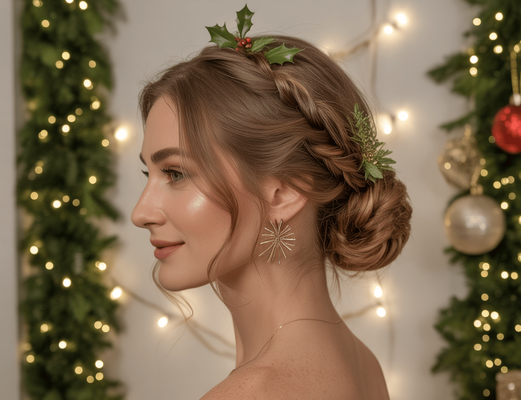 Discover five stunning Christmas hairstyle ideas perfect for holiday celebrations. From elegant low buns decorated with greenery to romantic loose waves with sparkling accessories, these festive looks are easy to achieve and great for any occasion. Enhance your holiday style with simple crowns, braids, and chic half-updos to shine brightly this Christmas season.